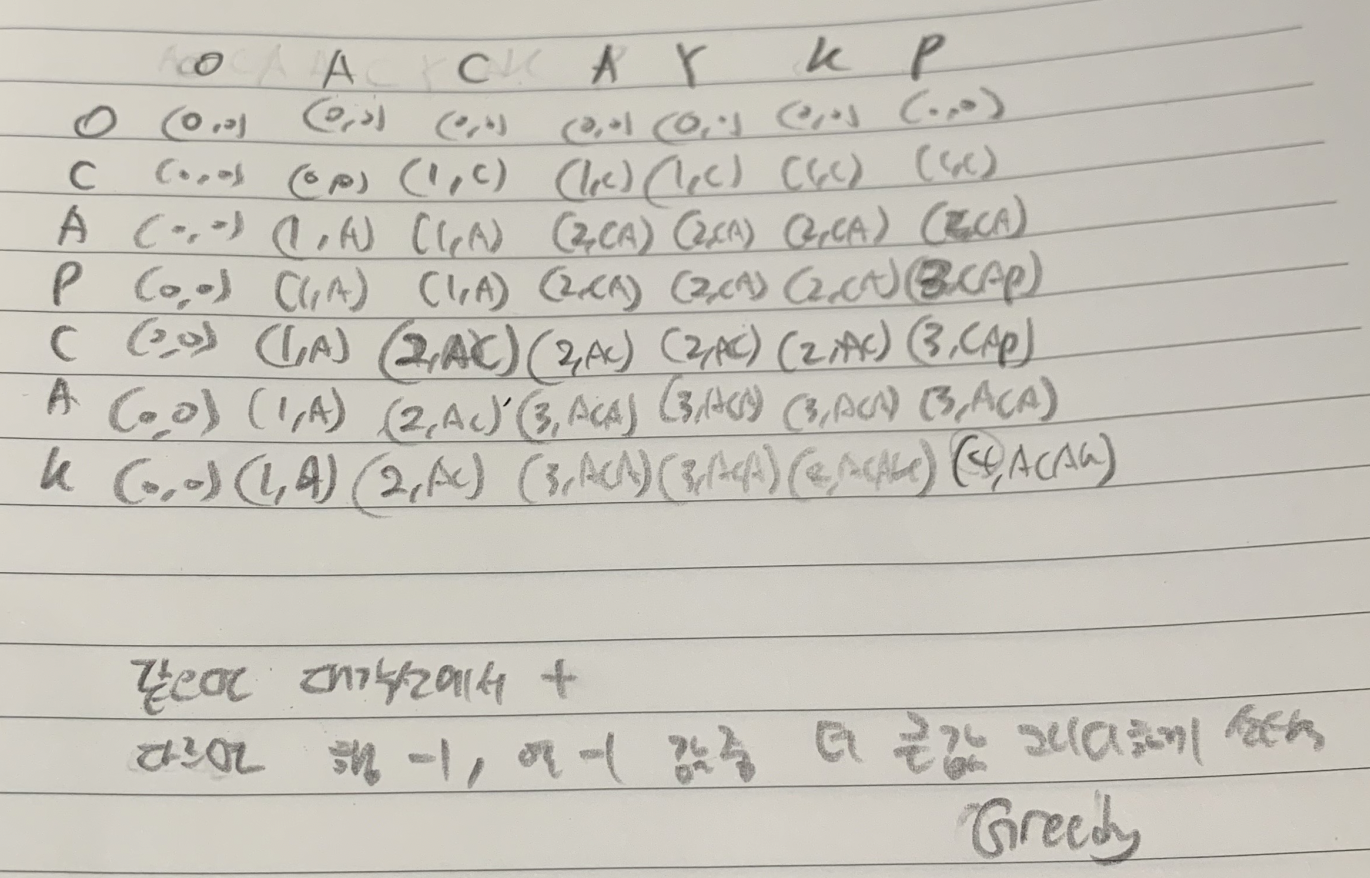 2. 비교 문자열이 같으면 대각선에서 길이와 문자열을 더해준다.