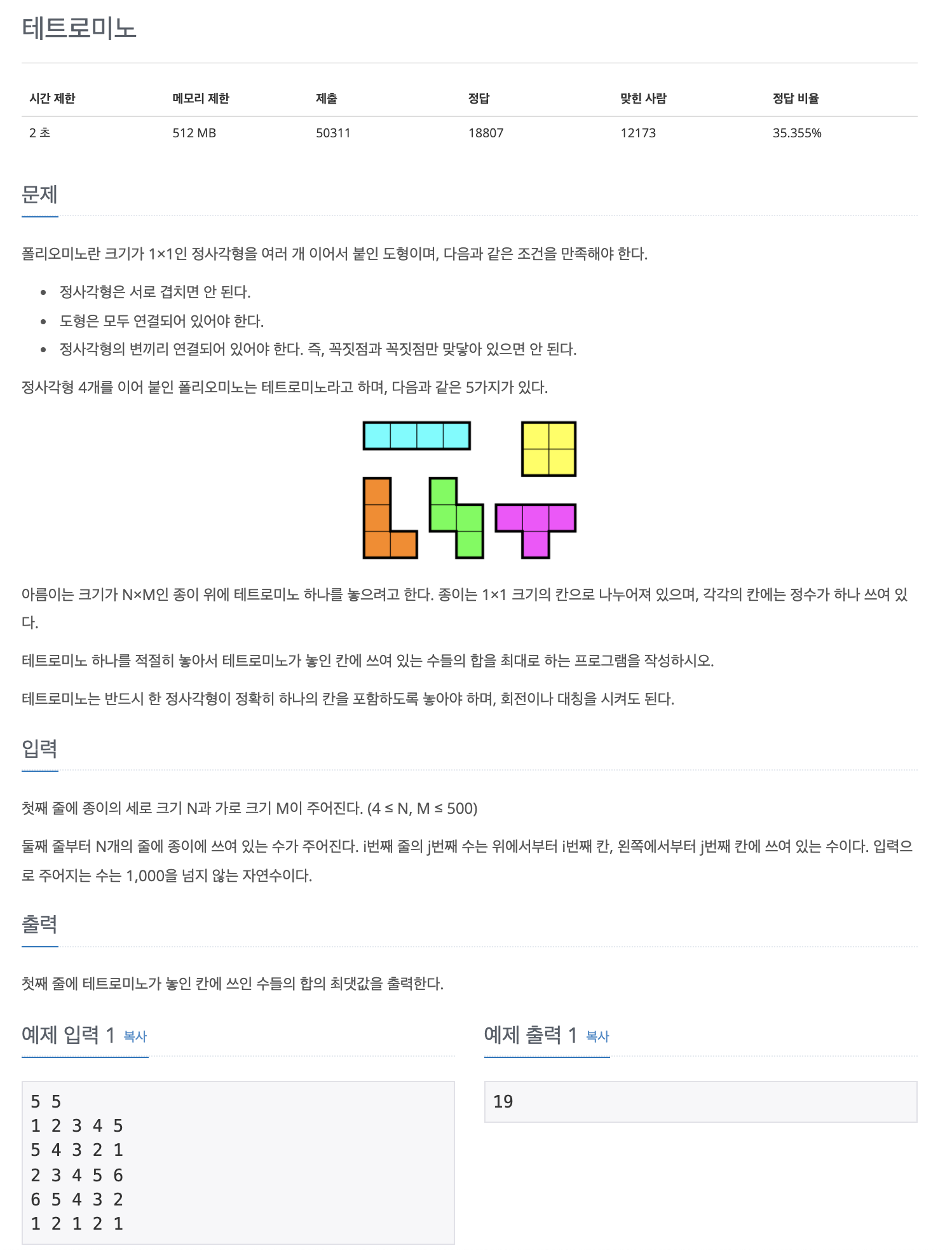 1. 테트로미노를 가운데가 오목한 형태만 제외하고 보면 시작점에서 네개를 연속으로 이동한 것으로 볼 수 있다고 생각했다. (가운데가 오목한 형태는 한 점이 연속으로 4번 움직인 경우가 아니라 따로 정의해 주고자 하였다)