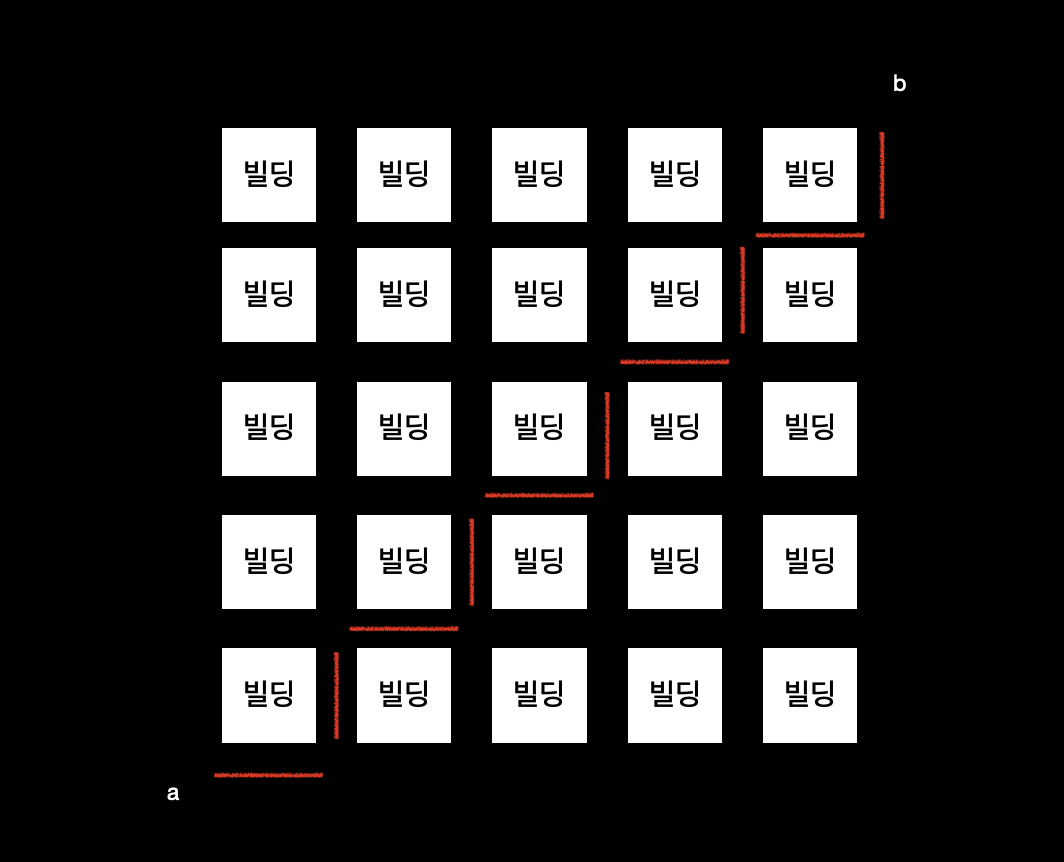 맨하탄은 빌딩이 굉장히 많은데 a지점에서 b지점으로 갈때의 거리를 구할때 아래 이미지와 같이 빌딩 단위로 계산한거에서 유래 되었다고 들었다.