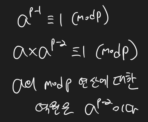 a^p-1 = 1 (mod P) (a와 p는 서로소이다)