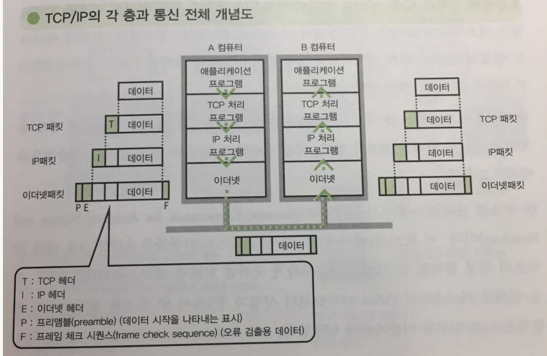 | 네트워크 인터페이스 층 | 직접 접속된 기기간의 통신을 구현한다. | 이더넷, ARP/RARP 등 |