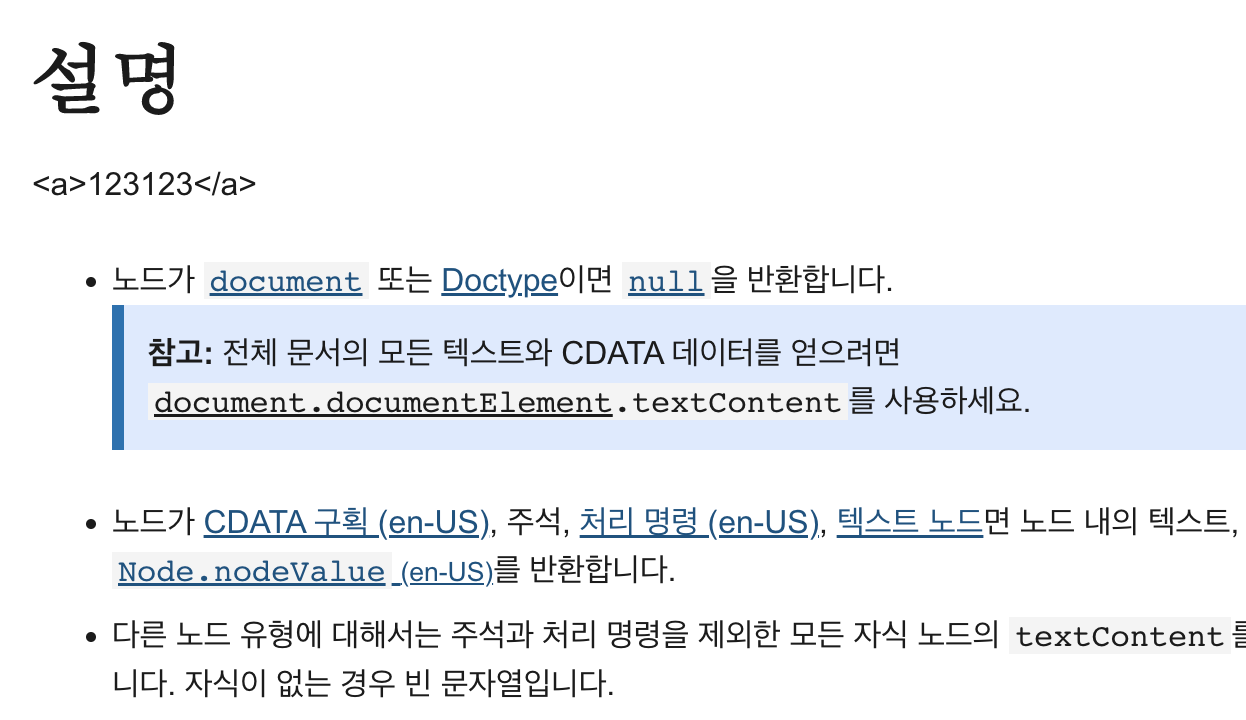 이를 innerText, textContent로 가져오게 되면