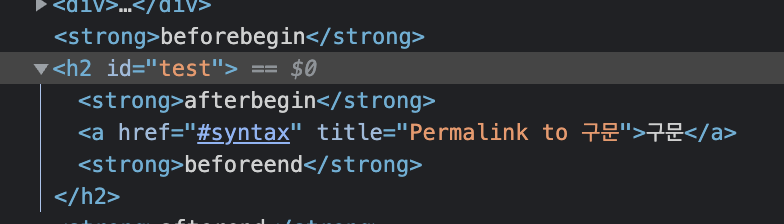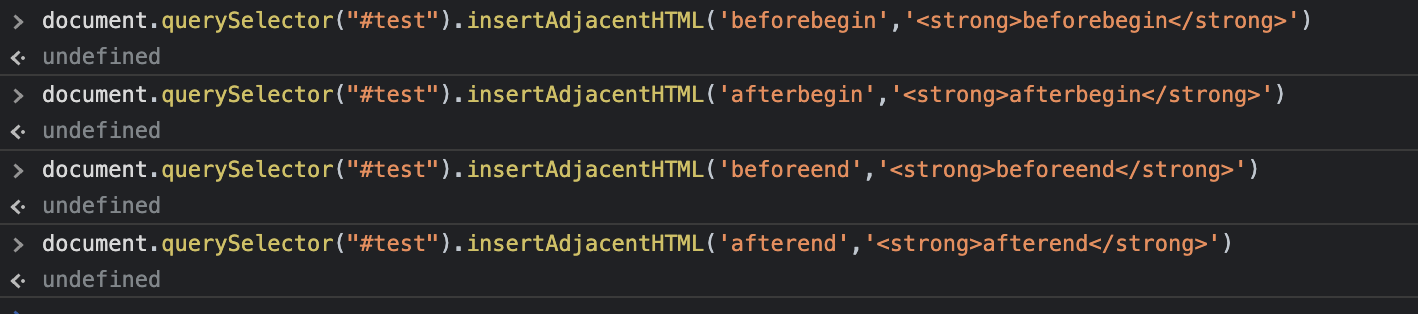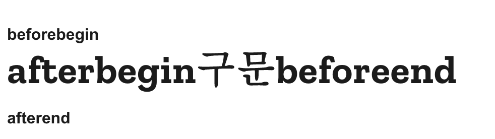 beforebegin, afterbegin, beforeend, afterend