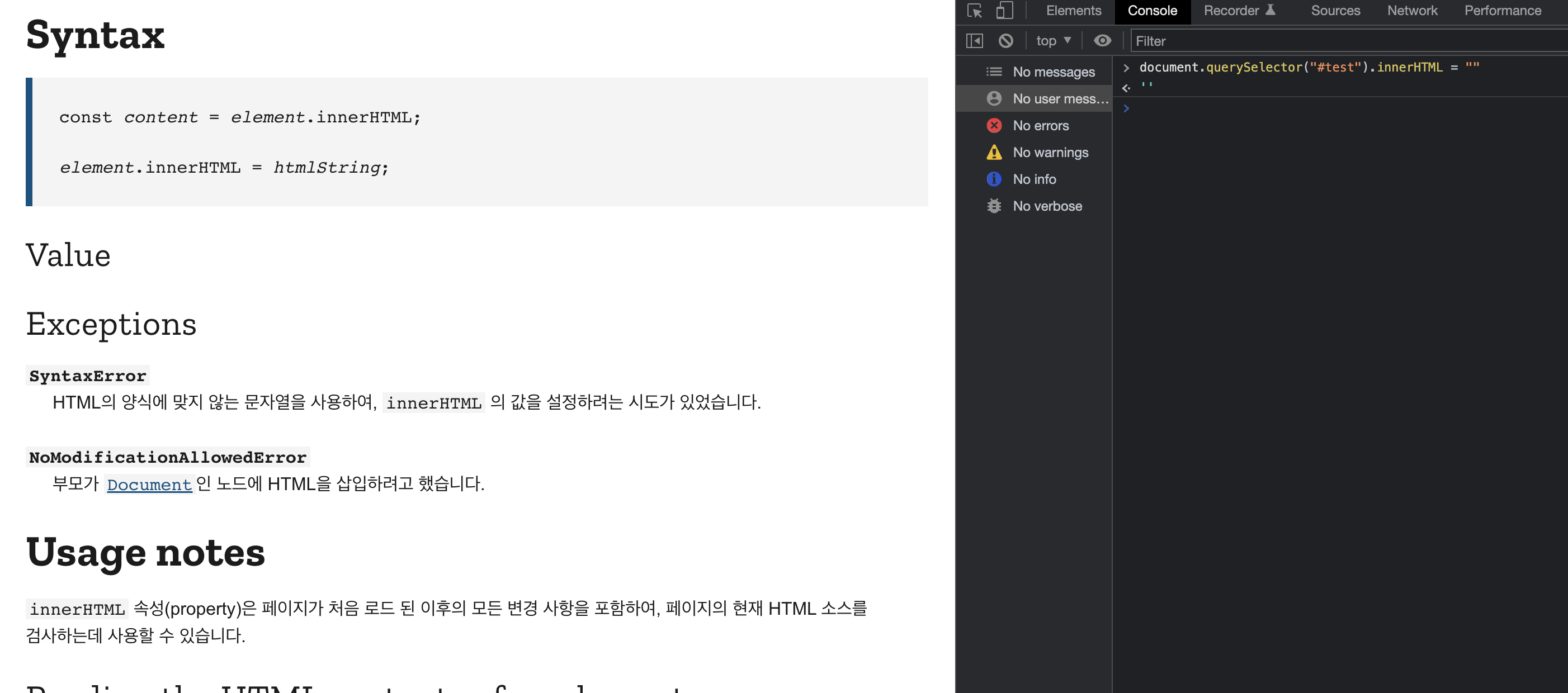 https://developer.mozilla.org/ko/docs/Web/API/Element/innerHTML