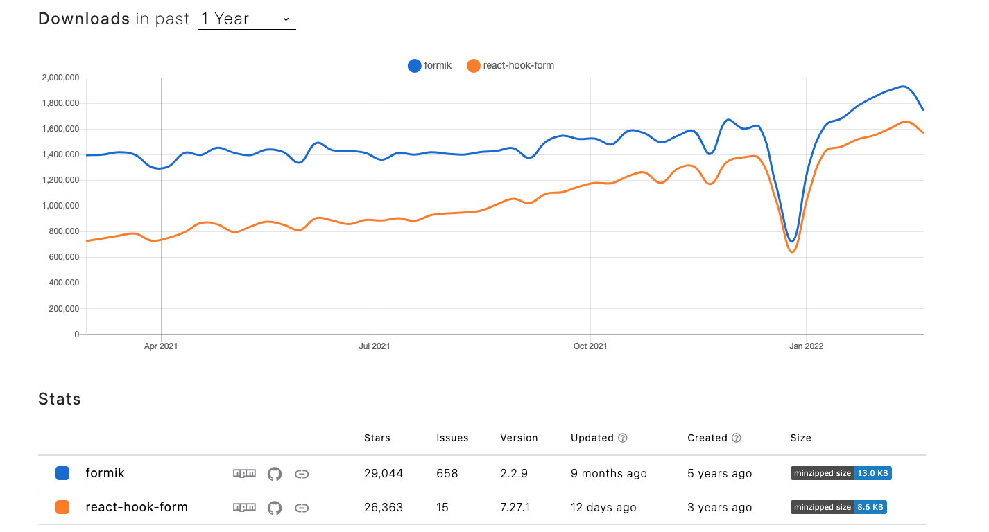 최근 트렌드를 보니 react-hook-form이 무섭게 치고 올라오고 있다.