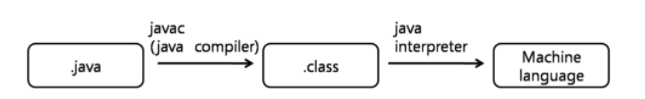 1\. 인터프리터 방식원래 인터프리터의 의미는 고급 언어로 작성된 프로그램을 한줄씩 번역해서 OS에서 인식하는 기계어로 변역하는 역할이다.자바 인터프리터는 JAVAC 명령으로 자바 프로그램을