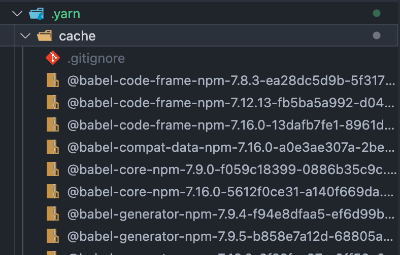- yarn berry 에서는 cache폴더를 git에 직접 업로드 하기를 추천합니다.