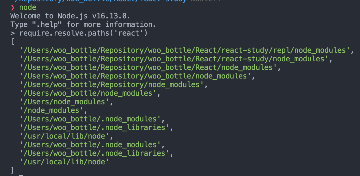 repl 에서 require.resolve.paths('react') 명령어를 사용하게 되면