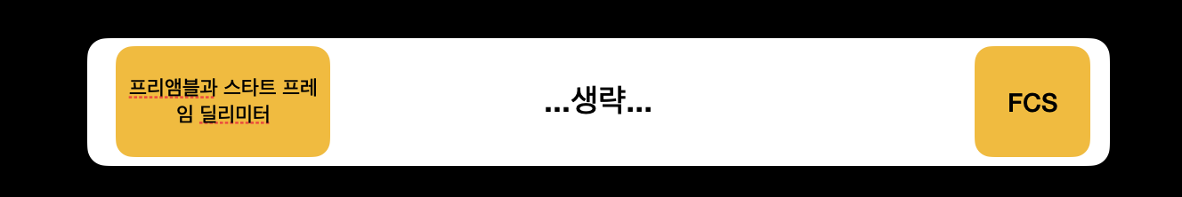 프리앰블은 전기신호를 해석하는 타이밍을 제공하기 위해 추가되고 FCS는 오류검출을 하기 위한 용도로 추가됩니다.