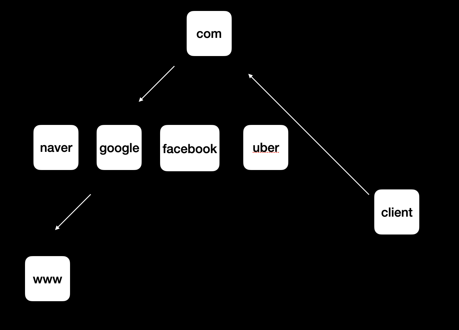 DNS 서버에서는 계층적으로 동작하게 됩니다. 트리구조로 존재하게 됨으로써 요청을 효율적으로 처리할 수 있습니다.