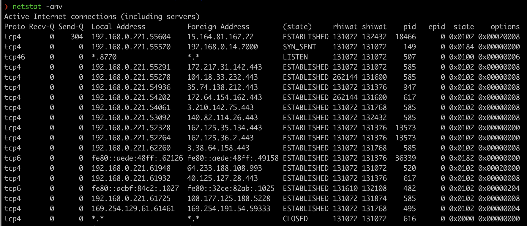 현재 동작하는 소켓을 확인하려면 command line에서 netstat 명령어를 통해 소켓들을 확인할 수 있습니다.