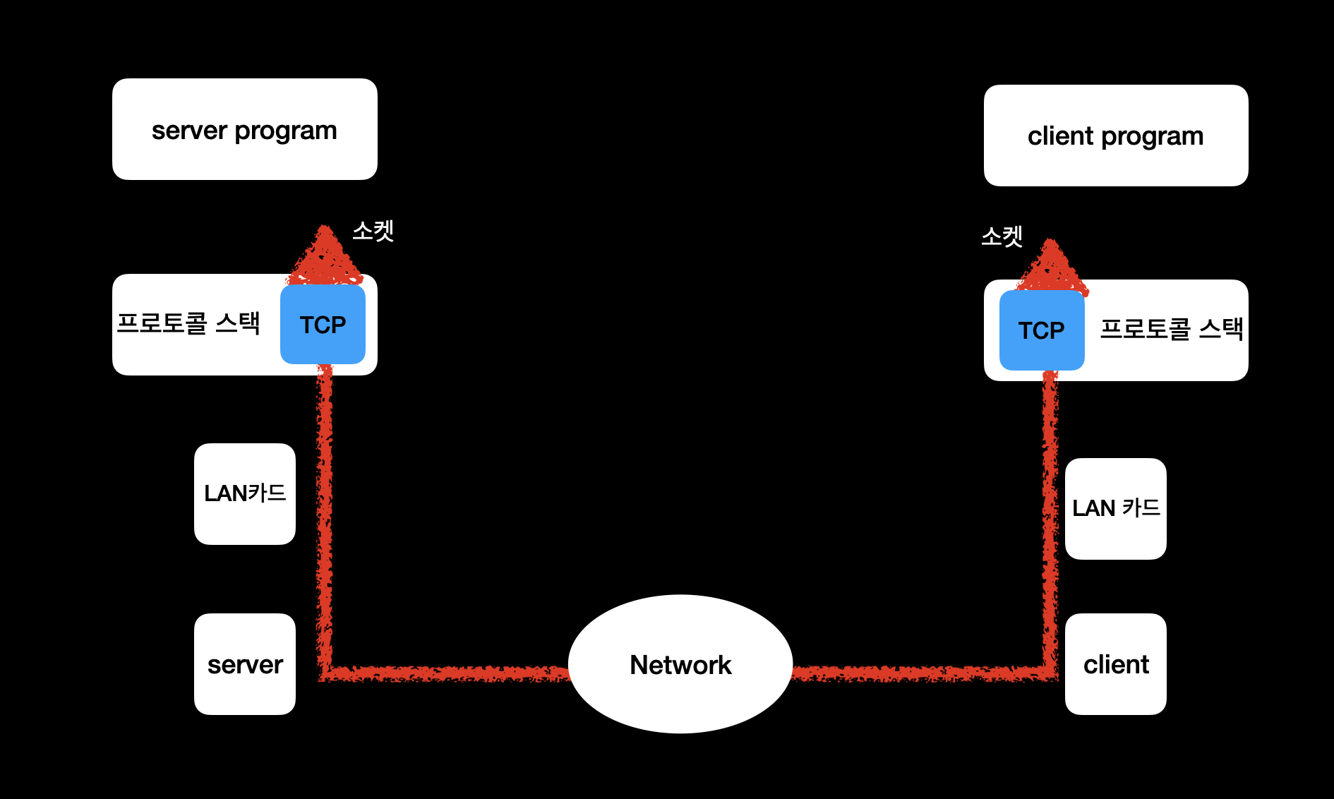 프로토콜 스택에서는 TCP/UDP, IP로 역할이 구분되어 있고 이후에는 네트워크 LAN 어댑터에서 실제 네트워크 요청이 이뤄지게 됩니다.