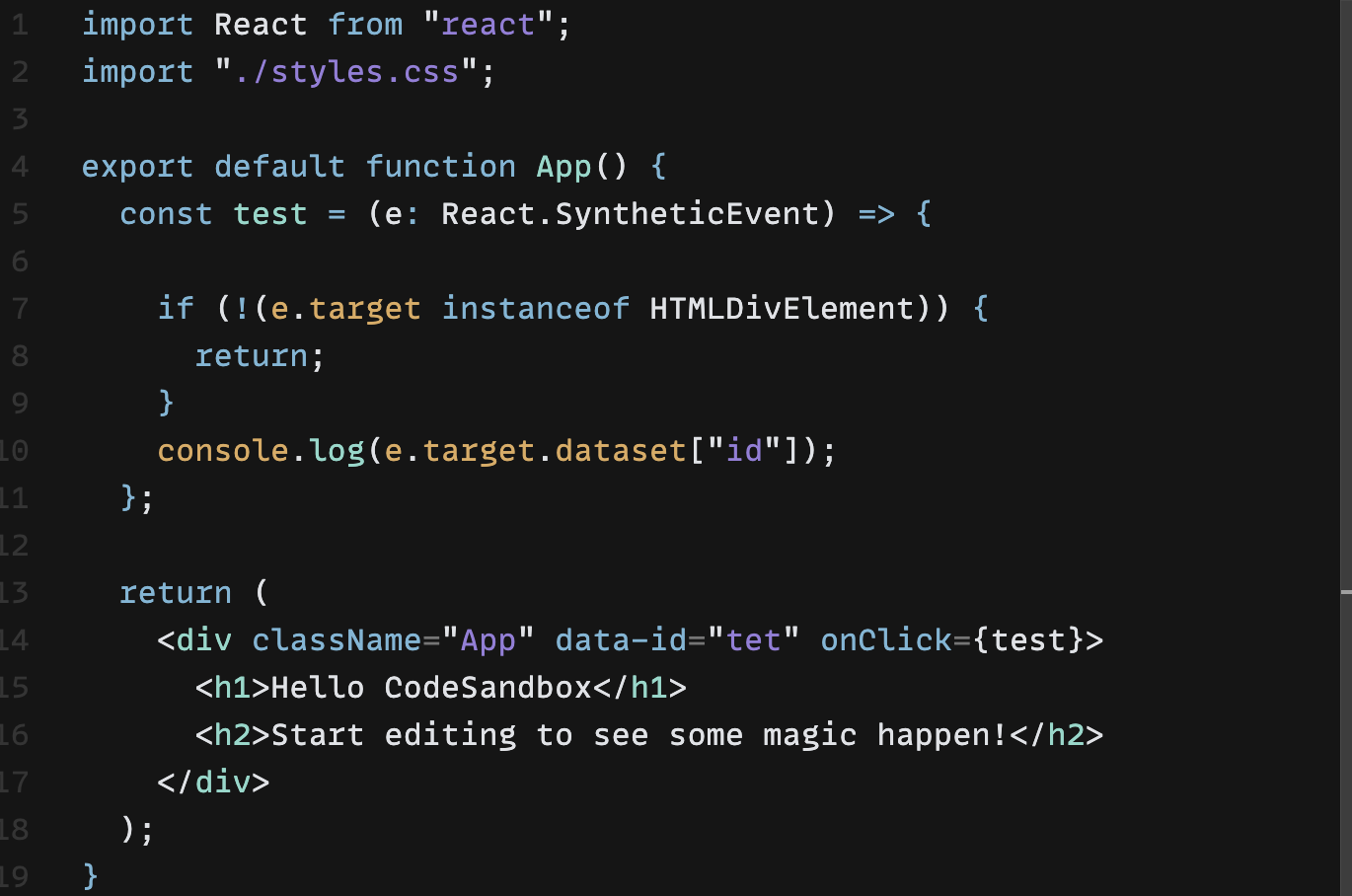출처 : https://stackoverflow.com/questions/49631688/property-dataset-does-not-exist-on-type-eventtarget