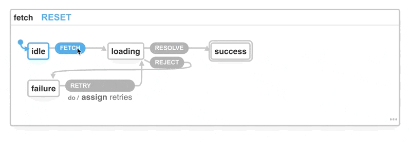 유한한 State Machine과 함께 우리는 어플리케이션 혹은 컴포넌트의 유한한 상태를 제어할 수 있습니다. 연습에서 State Machine은 정의된 엣지 케이스와 요구사항으로 부터 버그를 밝혀내는데 도움을 줄 수 있습니다. 정보를 더 제공하자면 xState 문서나 이 과정을 시청하길 추천합니다. state machine을 온라인에서 시각화 할 수도 있습니다.