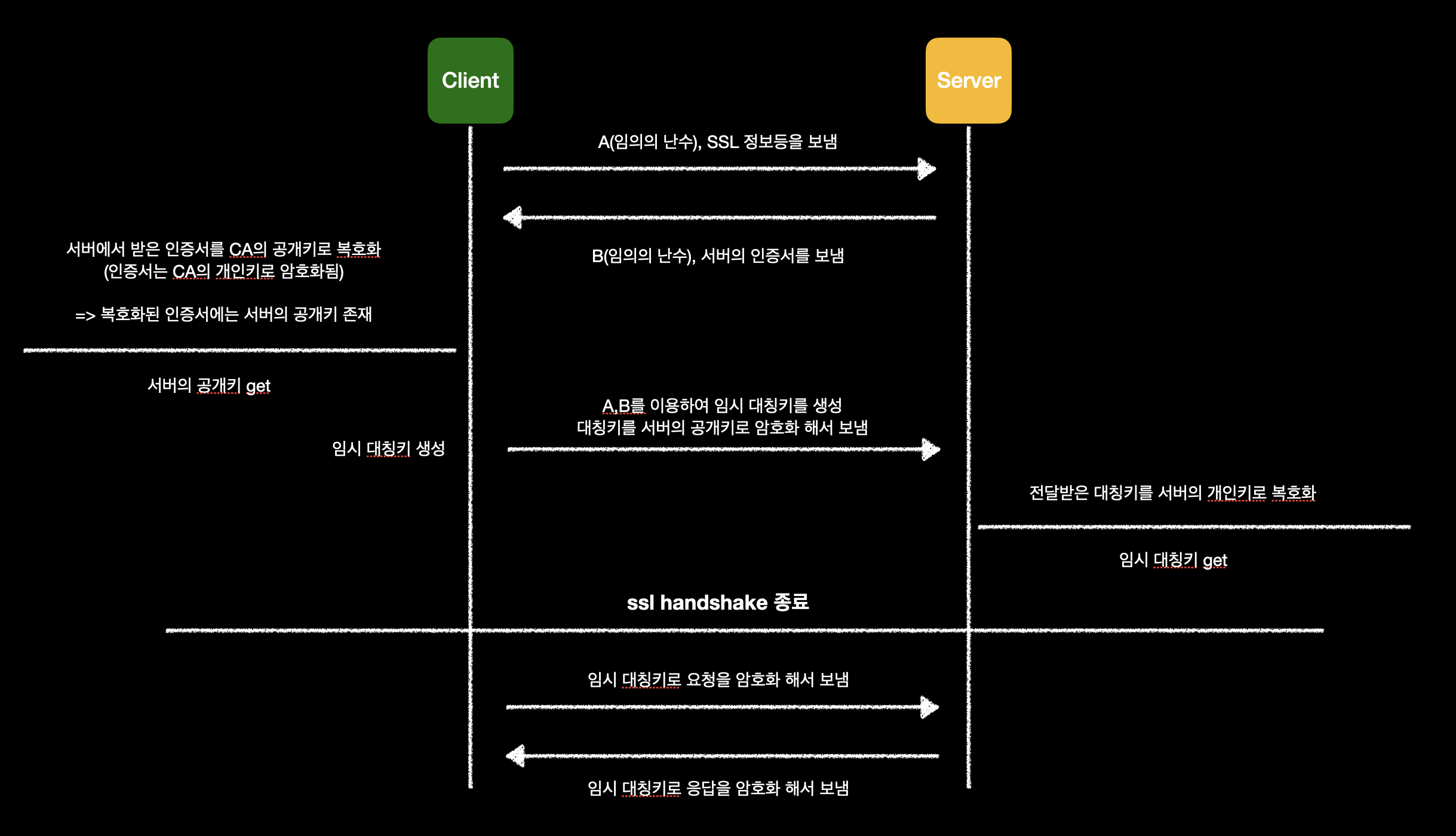 아래의 SSL HandShake 방식에서 단계별로 살펴보겠습니다.