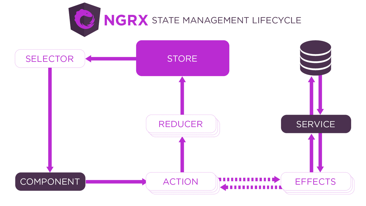 아래는 Angulart에서 Rxjs를 받아들이고 Flux 패턴과 결합한 상태관리 입니다.