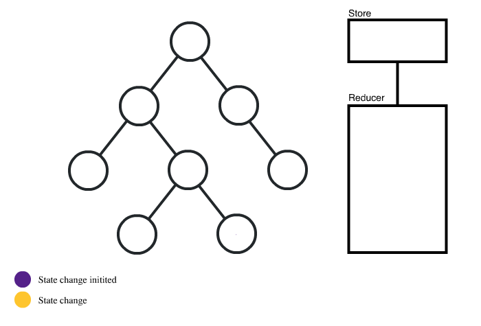 * 둘 사이의 관계는 Action과 Reducer라는 인터페이스로 분리하며 Controller는 이제 양방향이 아니라 단방향으로 Cycle을 이루도록 설계합니다.