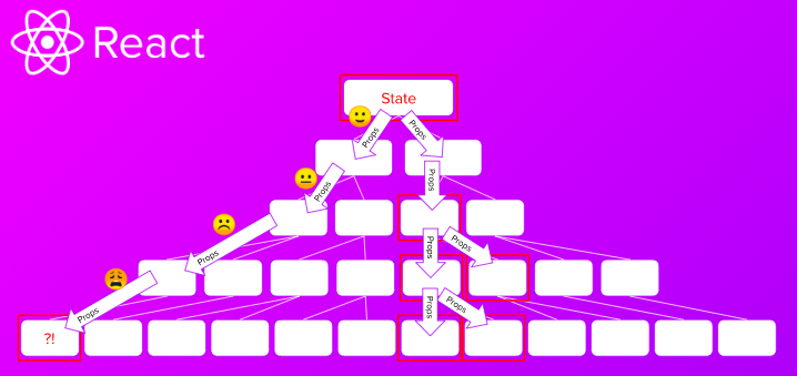 상태의 관리와 상태를 보여주는 곳이 거리가 너무 멀면 중간에 위치한 컴포넌트 들이 props로 전달을 해주어야 했습니다. 상태가 변하면 중간에 위치한 컴포넌트 들도 리렌더링이 되어 불필요한 렌더링이 발생하게 되는 것입니다.