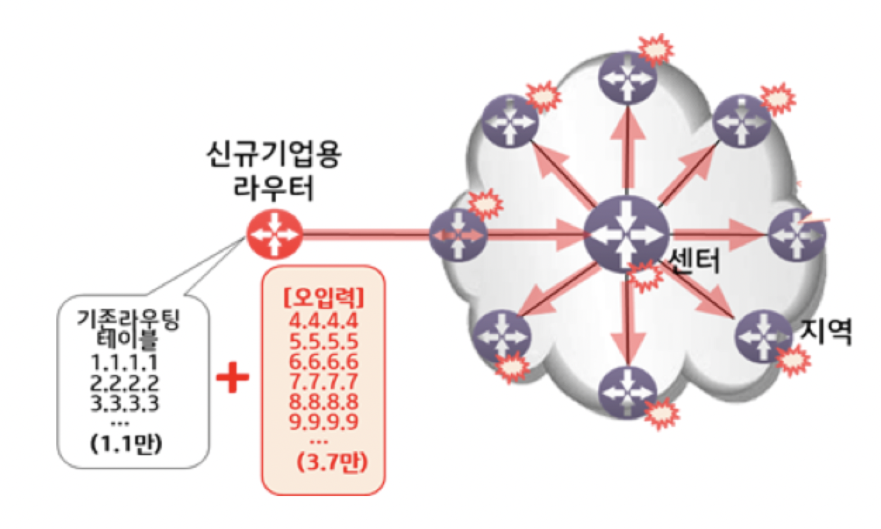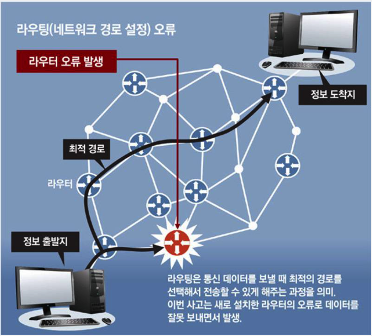 5. 타 지역의 백본 라우터에도 잘못된 정보가 전달되어 전국적으로 인터넷을 이용할 수 없었다.