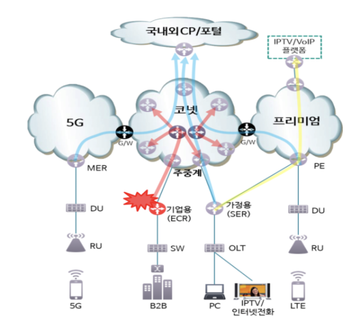 -> KT의 경우 일반 인터넷 백본 네트워크, IPTV/LTE를 위한 프리미엄 네트워크, 5G 백본 네트워크가 각각 다른 AS로 관리되고 있음
