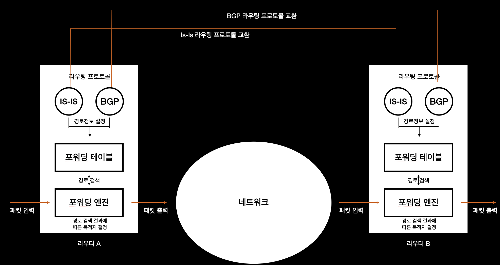라우터는 네트워크 경로 정보를 구성하기 위해 최신의 경로정보를 라우터끼리 교환 하는 프로토콜을 사용하는데, KT 네트워크와 내부 네트워크 경로 구성에는 BGP 프로토콜을 사용하고, KT 내부 네트워크 경로 구성에는 IS-IS 프로토콜을 사용한다.