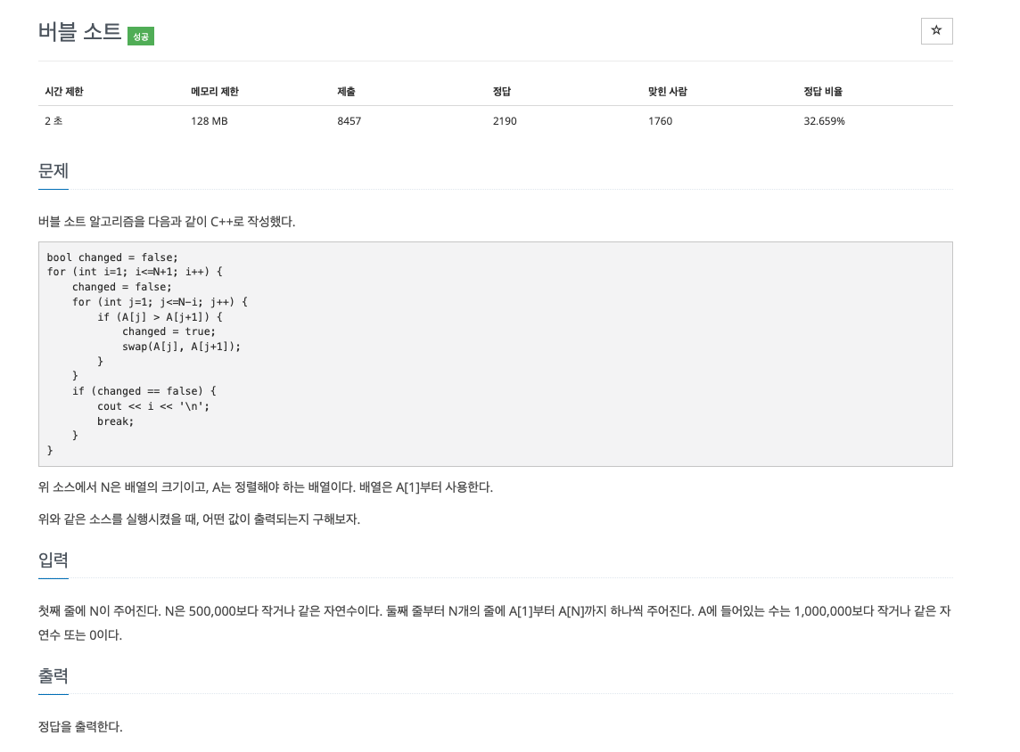 당연히 그냥 버블소트를 생으로 구현해서 출력하면 시간초과이다.