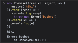 Promise 안에서 async를 사용하여 Error를 반환한 두번째의 경우에는 에러가 정상적으로 반환되지 않습니다.