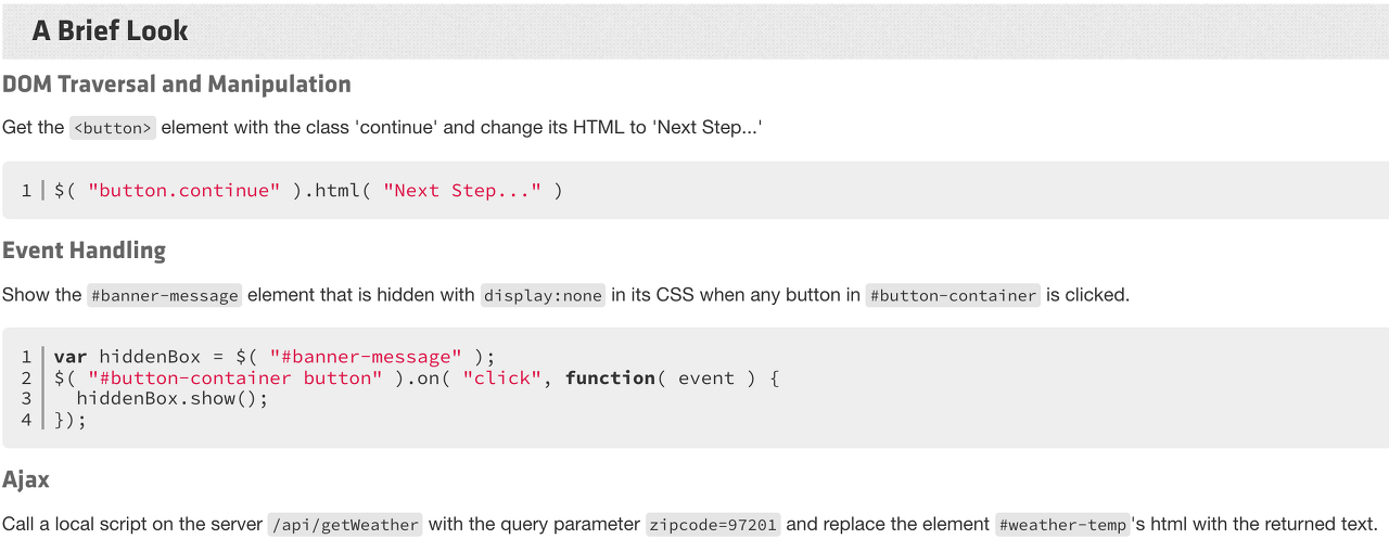 아래는 jquery에서 소개하는 간략한 소개에 나오는 주요개념 들입니다.