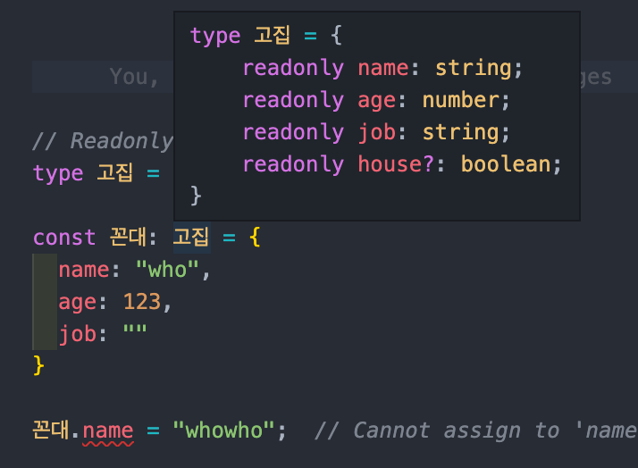 속성이 변하면 안되는 인스턴스에 readonly 키워드를 사용하여 불변을 보장해야할 수 도 있습니다.